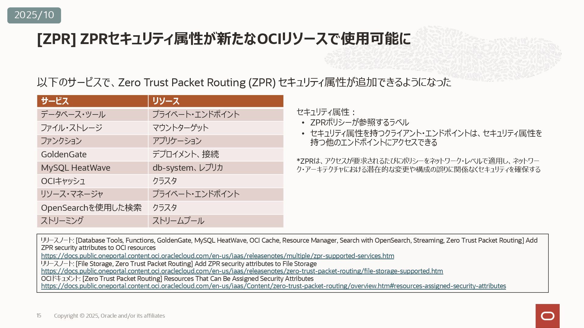 Oracle Cloud Infrastructure:2025年10月度サービス・アップデート