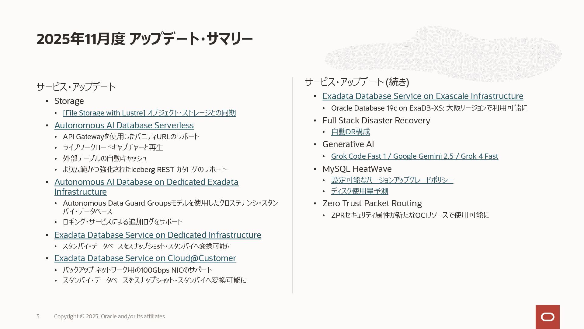 2025年11月のOracle Cloud Infrastructure サービス・アップデートです。