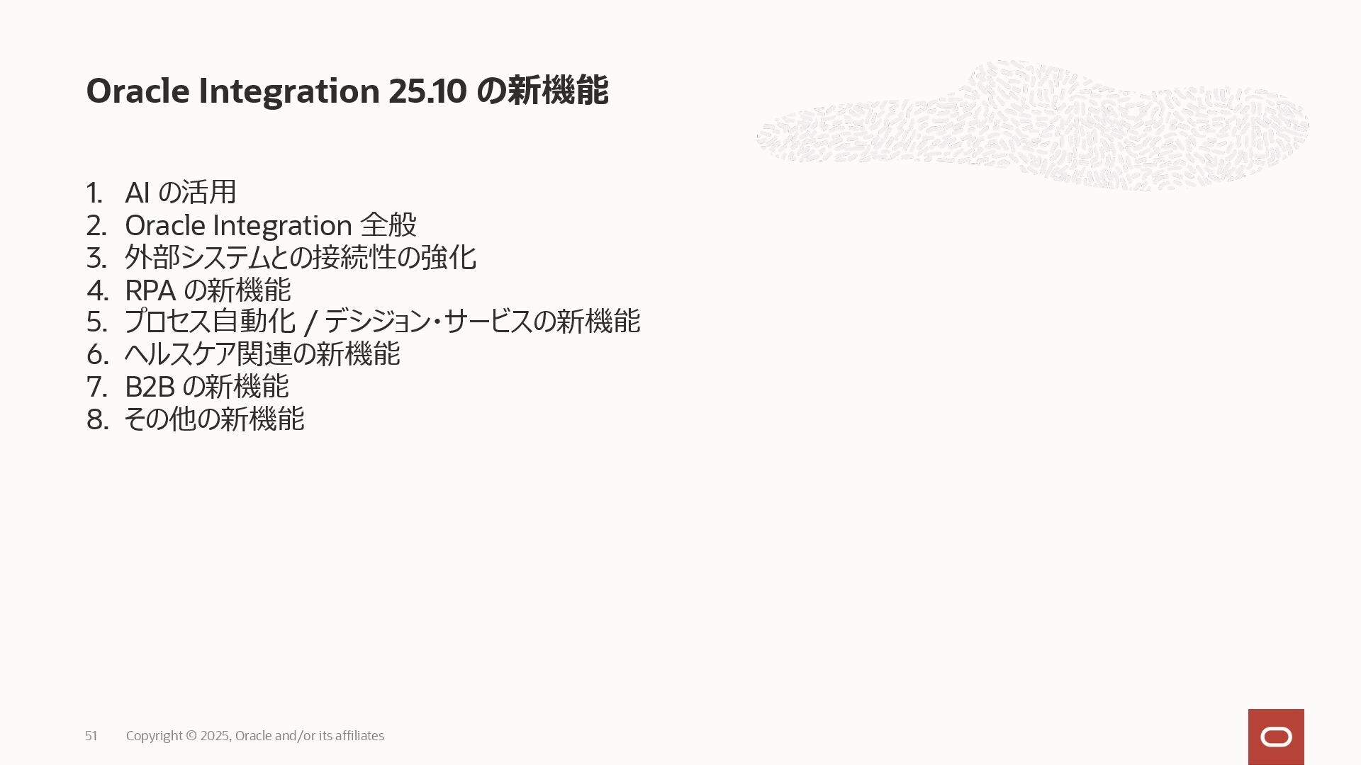 Oracle Integration サービス・アップデート 2025年10⽉ Copyright © 2025, Oracle and/or its