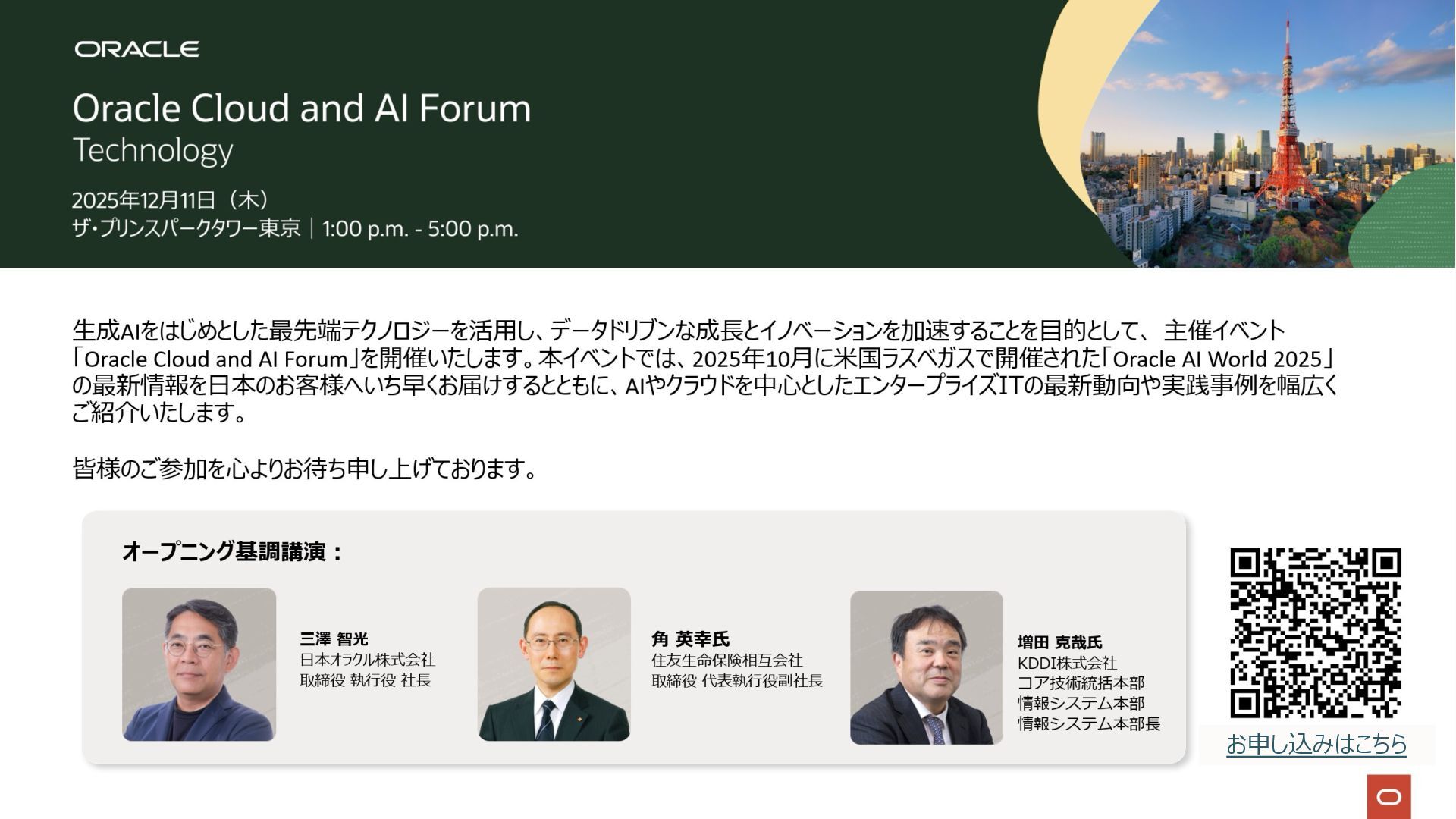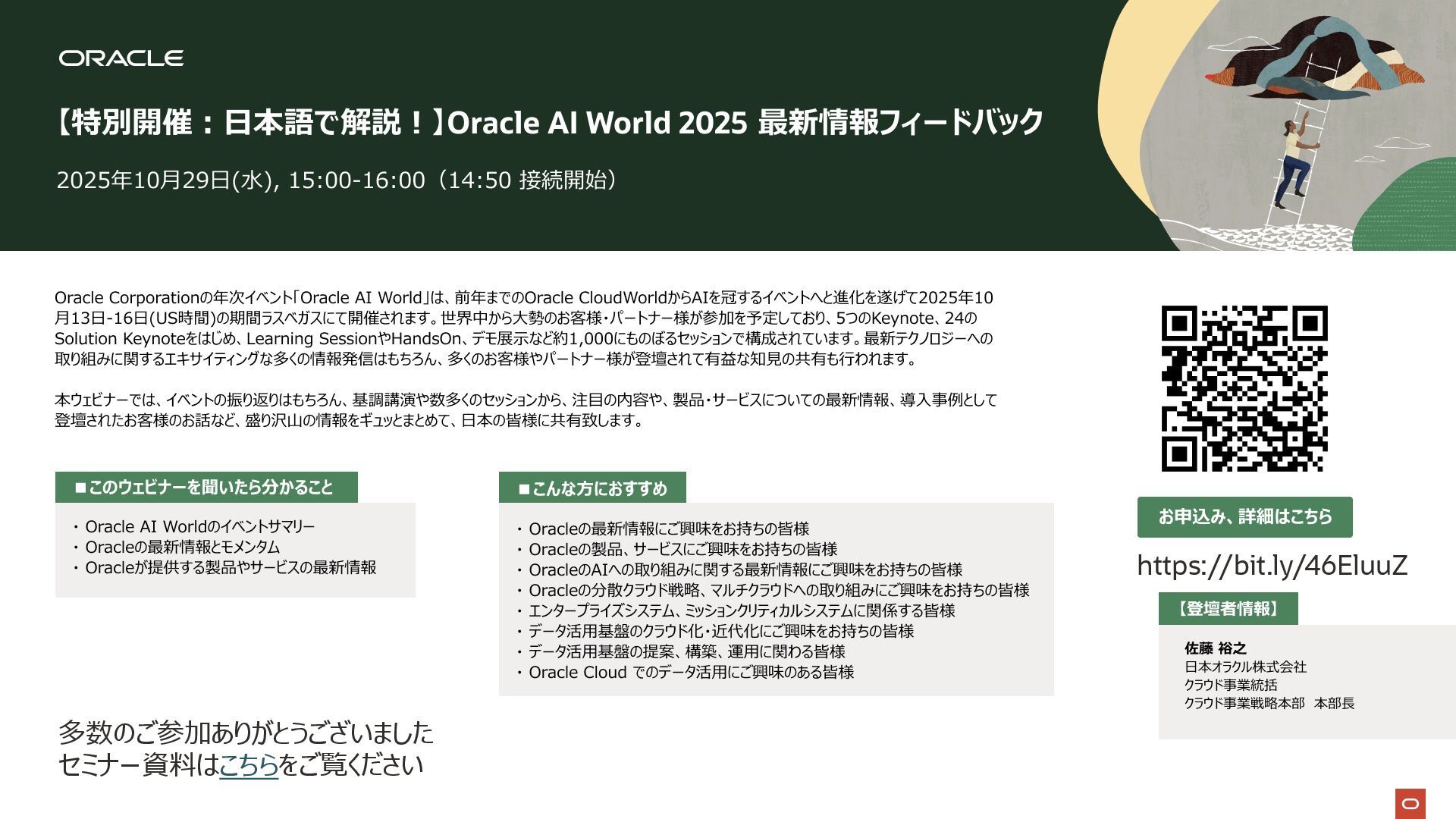 【Oracle Cloud ウェビナー】【特別開催:日本語で解説!】Oracle AI World 2025 最新情報フィードバック