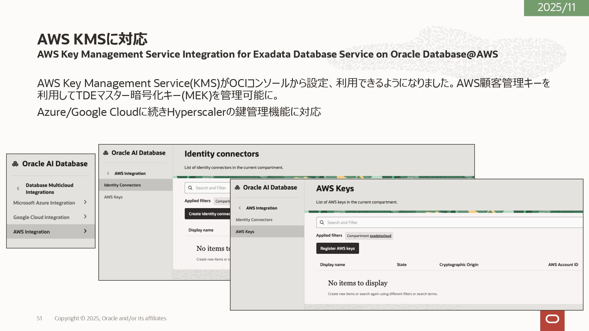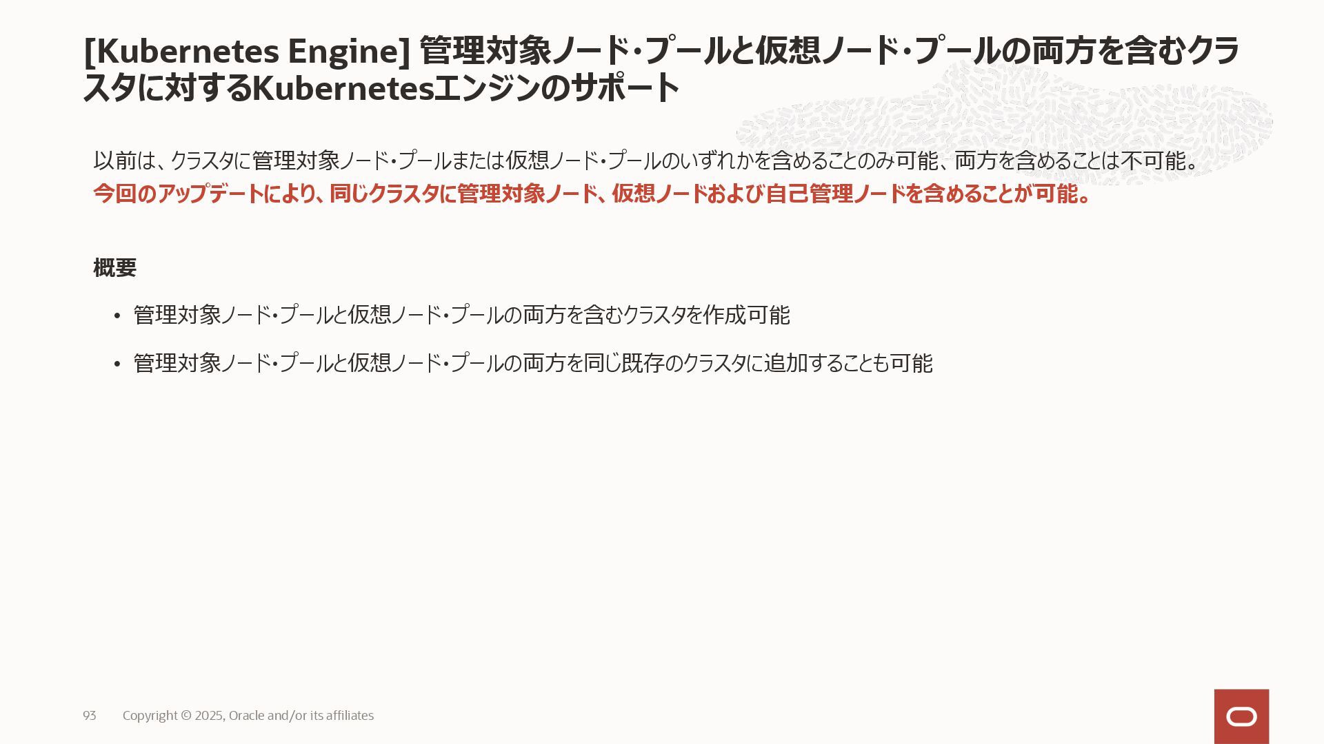 4. データベース・サービス 5. Platform Service 6. マーケティング関連情報 (ニュース/事例/セミナー等) サービス・アップデート Copyright © 2025, Oracle and/or its affiliates 106