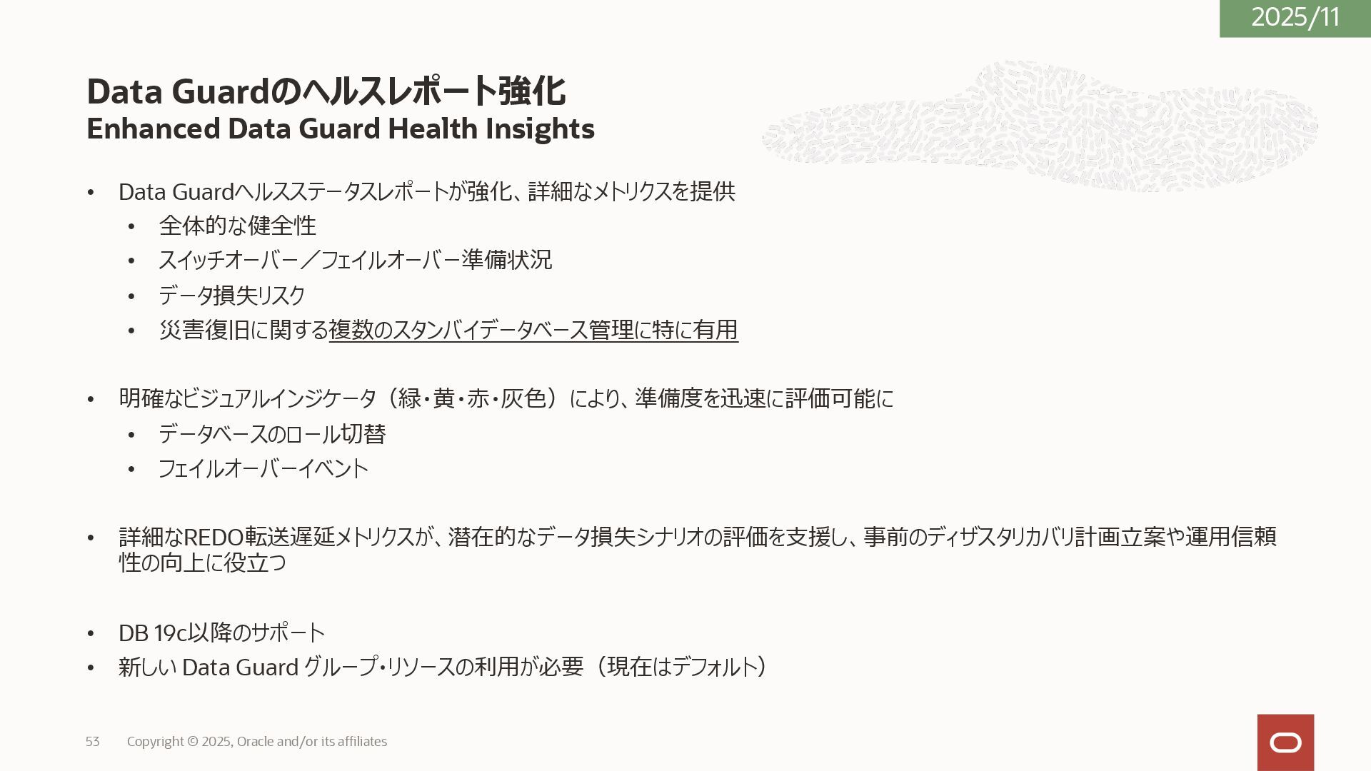 49. Data Guard Group Enhanced Data Guard Health Status Reporting ※2025年11⽉更新