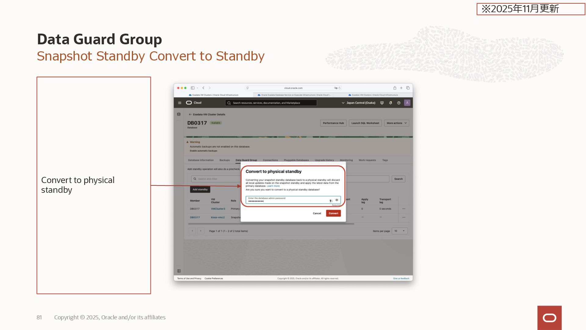 67. Data Guard Group Snapshot Standby Convert to Standby ※2025年11⽉更新 Convert
