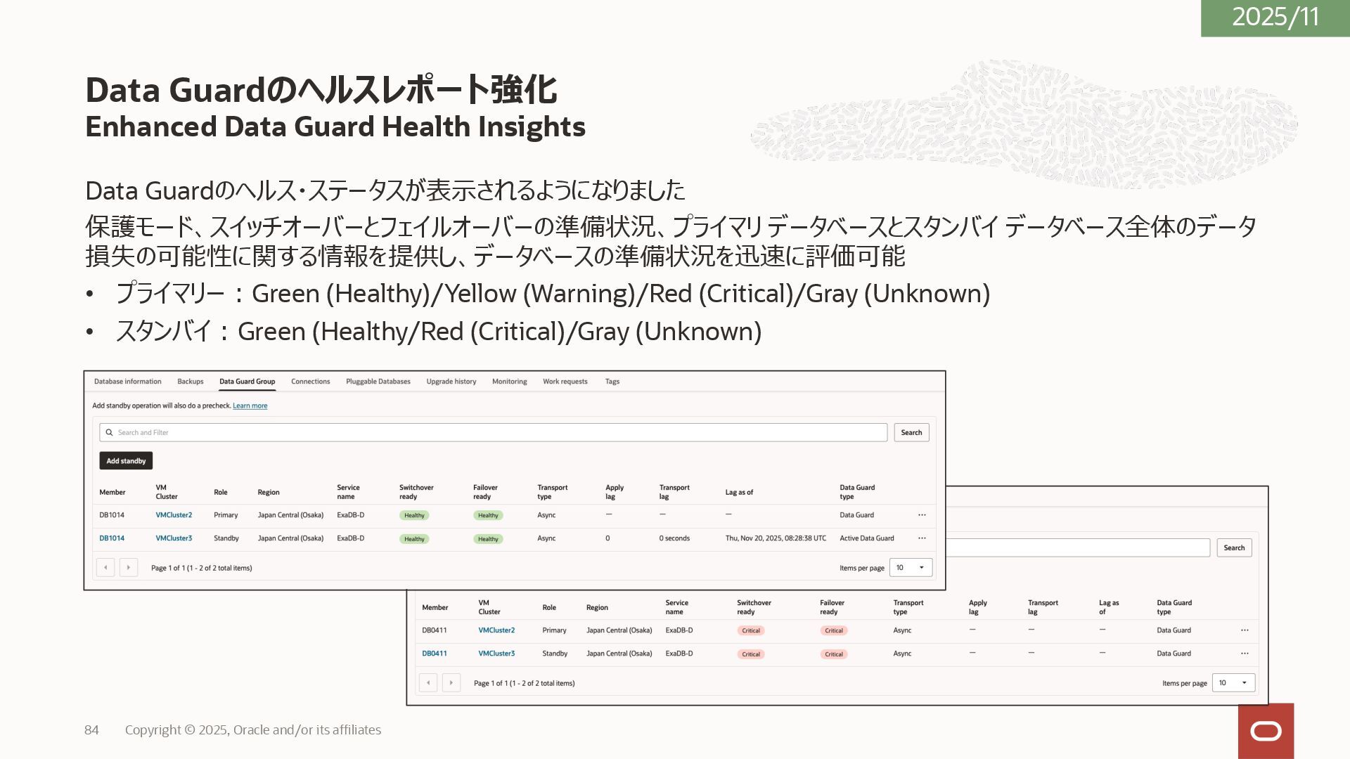 50. Data Guard Group Enhanced Data Guard Health Status Reporting ※2025年11⽉更新