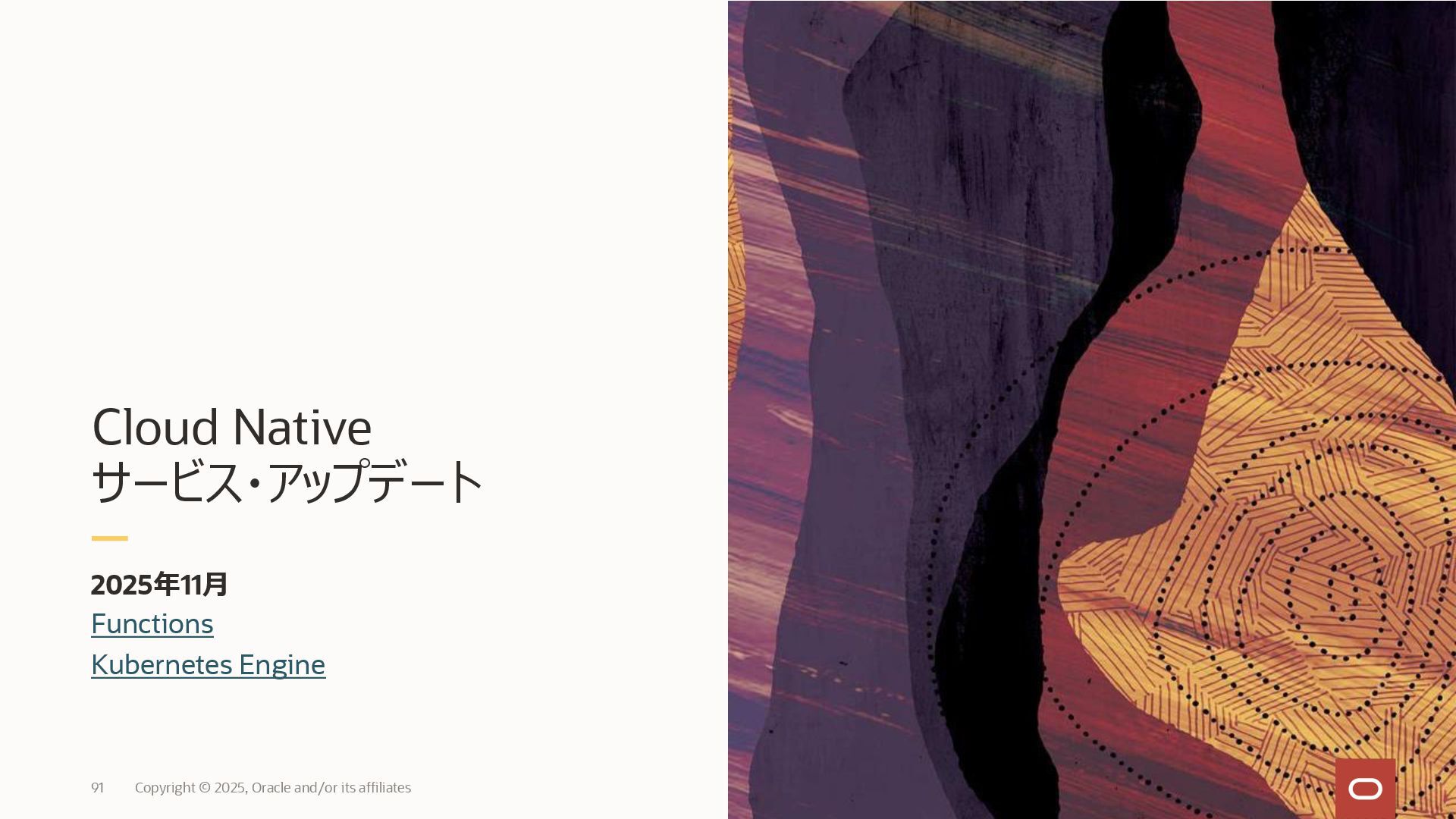 4. データベース・サービス 5. Platform Service 6. マーケティング関連情報 (ニュース/事例/セミナー等) サービス・アップデート Copyright © 2025, Oracle and/or its affiliates 90