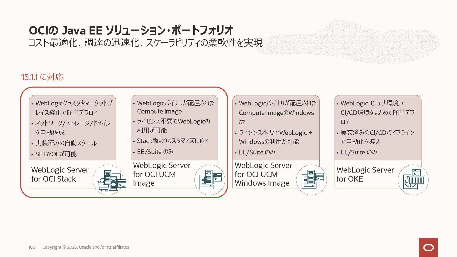 and/or its affiliates 102 https://www.oracle.com/jp/java/weblogic/webl ogic-for-oracle-cloud-infrastructure/
