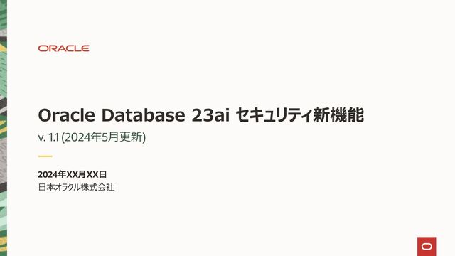 Oracle Database 23aiのセキュリティの新機能の紹介 1. SQL Firewall 2. Schema Privileges 3. Column Level Audit 4. Azure ADとのデータベース認証連携 5. その他新機能