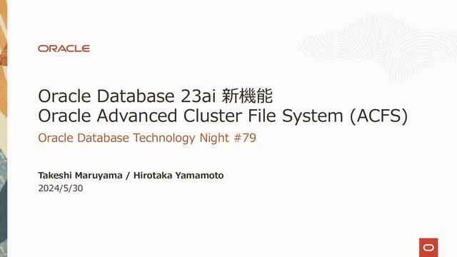 2024年5月30日に実施した Oracle Database Technology Night #79 - Oracle Database 23ai 新機能 Oracle Advanced Cluster File System (ACFS) でお話しした資料です。
