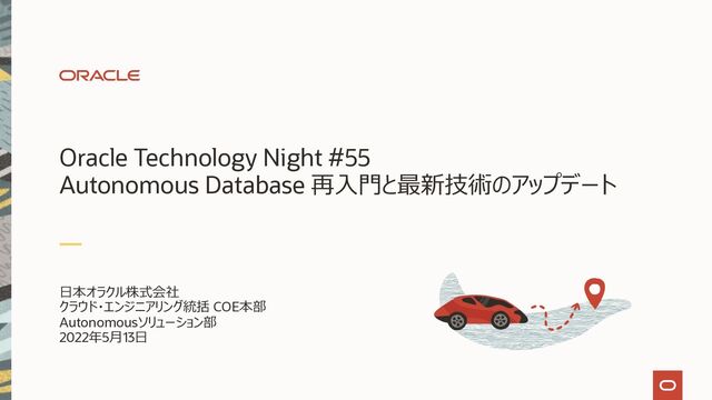 以下の利点があります。 • シンプルな記述 • ファイルパスからパーティションの列とデータ型を⾃動で判別(⼿動で指定も可) • フォルダの削除や追加に対して同期をとるSYNC_EXTERNAL_PART_TABLEの利⽤ ※partition_clouse句と同時には使えません。 2022/3 DBMS_CLOUD.CREATE_EXTERNAL_PART_TABLE ( table_name => 'mysales', credential_name => 'mycredential', file_uri_list => https://objectstorage.us-phoenix-1.oraclecloud.com/.../sales/*.csv', column_list => 'product varchar2(100), units number, country varchar2(100), year (number), month varchar2(2)', field_list => 'product, units', --[Because country, year and month are not in the file, they are not listed in the field list] format => '{"type":"csv","partition_columns":["country", "year", "month"]}'); .../sales/country=USA/year=2020/month=01/file1.csv .../sales/country=USA/year=2020/month=01/file2.csv .../sales/country=USA/year=2020/month=02/file3.csv .../sales/country=USA/year=2020/month=03/file1.csv .../sales/country=FRA/year=2020/month=03/file1.csv 46 https://docs.oracle.com/en/cloud/paas/autonomous-database/adbsa/query-external-partition-file-url-path.html#GUID-078FEAA8-13BE-4FA6-94F4-4BDCE082CDCD