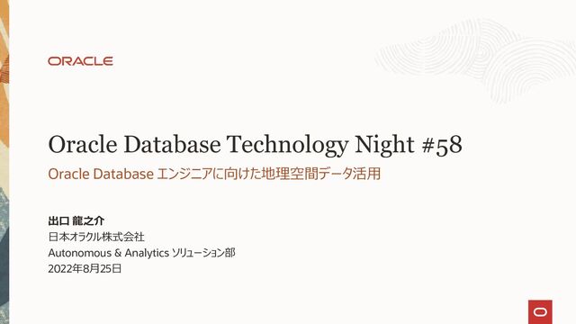 Oracle Database Technology Night #58 Oracle Databaseエンジニアに向けた地理空間データ活用