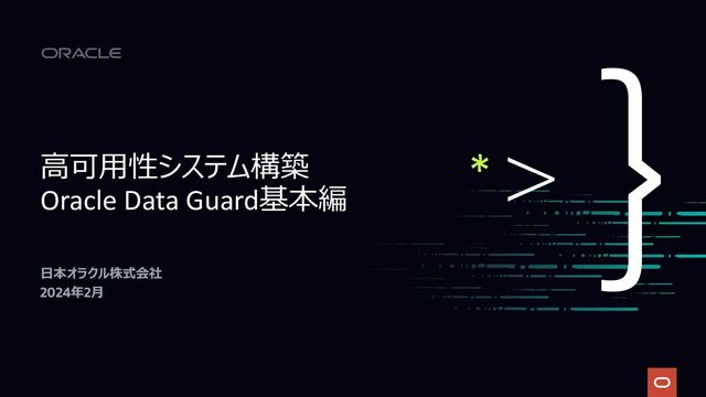 ⾼可⽤性システム構築 Oracle Data Guard基本編 ⽇本オラクル株式会社 2024年2⽉