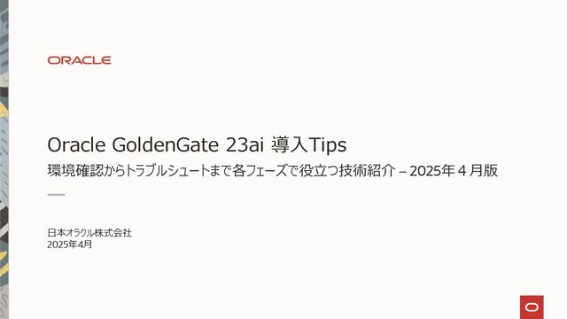 Oracle GoldenGate 23ai 導入Tips - 以下の工程について Tips を紹介する資料です。