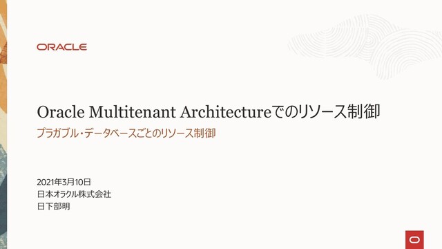 2からPDBごとに初期化パラメータで 設定できるようになったのでほぼ使用しない 初期化パラメータ(CDB全体とPDB毎に設定可能) • CPU • メモリー(SGA, PGA) • I/O プラガブル・データベースごとのリソース制御 Copyright © 2021, Oracle and/or its affiliates 12 Oracleクライアント host:port/service1 PDB 2 PDB n oracle System Global Area (SGA) PDB 1 Oracleサーバー・プロセス oracle oracle CPU メモリー service1 PDB内 CDB全体