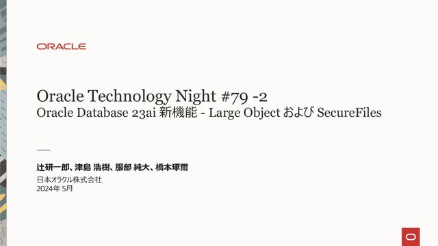 2024年5月30日に実施した Oracle Database Technology Night #79 - Oracle Database 23ai 新機能 Large Object および SecureFiles でお話しした資料です。