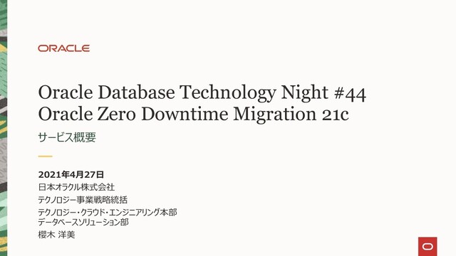 Oracle Database Technology Night #44 Zero Downtime Migration 21c 21cより、GoldenGateを使用した論理オンライン移行 が可能となりました。 論理移行が可能になったことで、アップグレードを伴う移行や、ターゲット・データベースにAutonomous Databaseがサポートされるようになりました。 また、物理移行/倫理移行のいずれの方式でも移行時のNon-CDBからCDBへの変換に対応されました。
