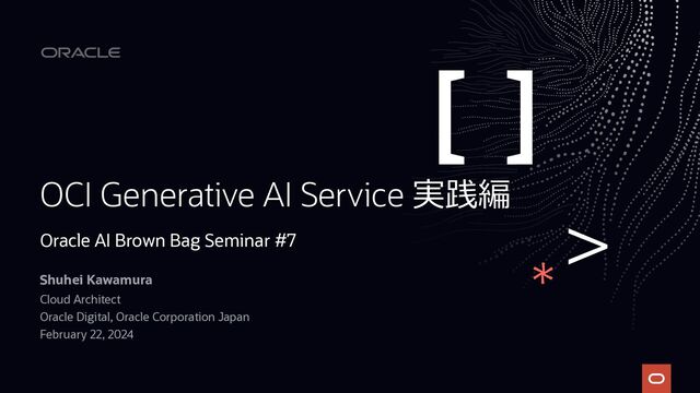 OCI Generative AI Service Generate Texts from os import getenv from dotenv import load_dotenv from langchain_community.llms.oci_generative_ai import OCIGenAI load_dotenv() COMPARTMENT_ID = getenv("COMPARTMENT_ID") # https://inference.generativeai.us-chicago-1.oci.oraclecloud.com SERVICE_ENDPOINT = getenv("GEN_AI_INFERENCE_ENDPOINT") llm = OCIGenAI( service_endpoint=SERVICE_ENDPOINT, compartment_id=COMPARTMENT_ID, model_id="cohere.command", # auth_type=“API_KEY”, # デフォルトでは、API Keyが認証⽅式として使⽤される auth_profile="CHICAGO" ) response = llm.invoke("Tell me a joke", temperature=0.7) print(response) # Why was the computer cold? Because it left its Windows open! ...