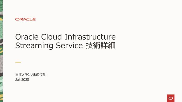 Oracle Cloud Infrastructure Streaming Service 技術詳細 日本オラクル株式会社 Jul. 2023 1