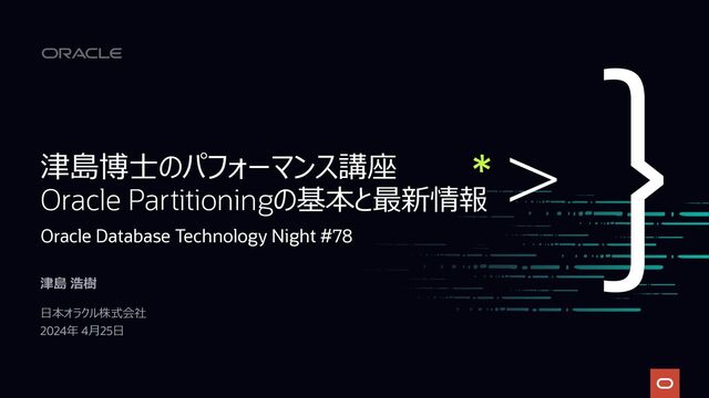 and/or its affiliates TYP3 TYP1 TYP7 JAN 2022 FEB 2022 CREATE TABLE EVENTS.. PARTITION BY RANGE (time_id) SUPARTITION BY LIST (model) … … JAN 2022 FEB 2022 DEFAULT SELECT .. FROM events WHERE model = ‘TYP7’; パーティション・プルーニング機能への影響はなし • 存在しないパーティションはDEFAULTになる パーティション・ワイズ結合に影響する