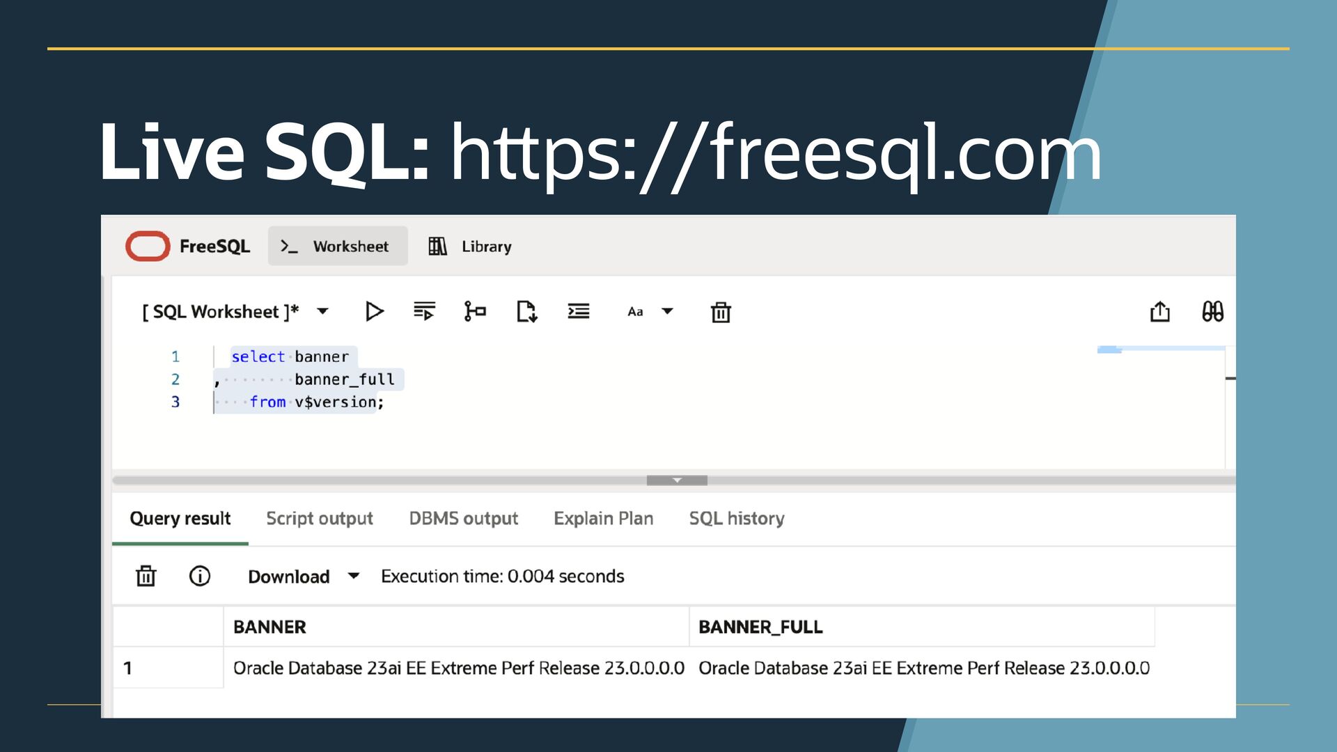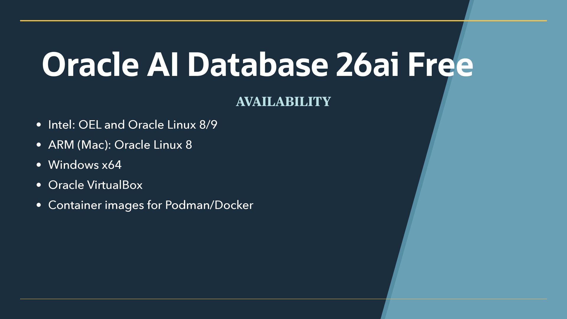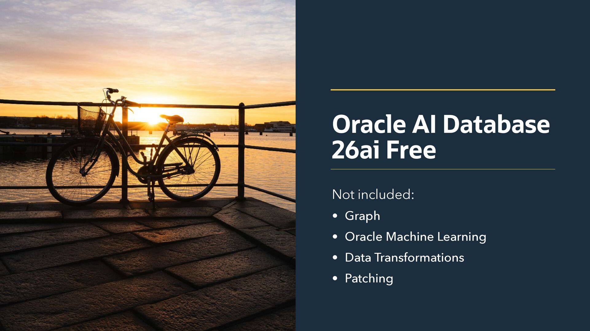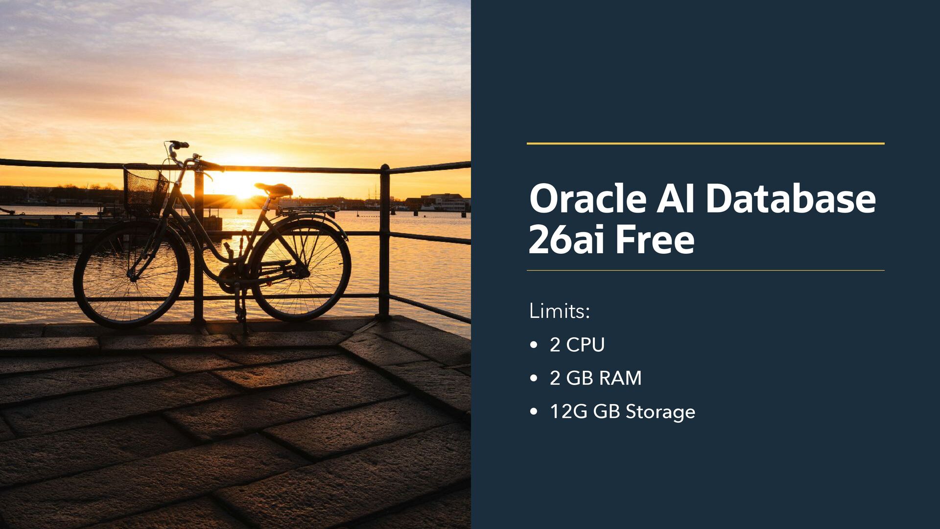 GitHub or Container Registry • No need for an OCI account Oracle Cloud Infrastructure • Available in Always Free Tier Autonomous DB for Developers • Run on existing Exadata systems • No extra charge • Unlimited DBs • Limits: 4 ECPU, 20GB storage, 30 concurrent sessions FREE IN OCI OR RUN ON - PREM