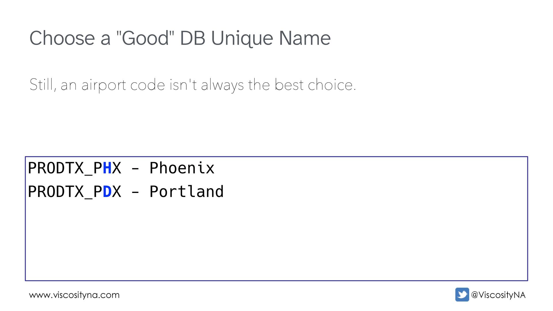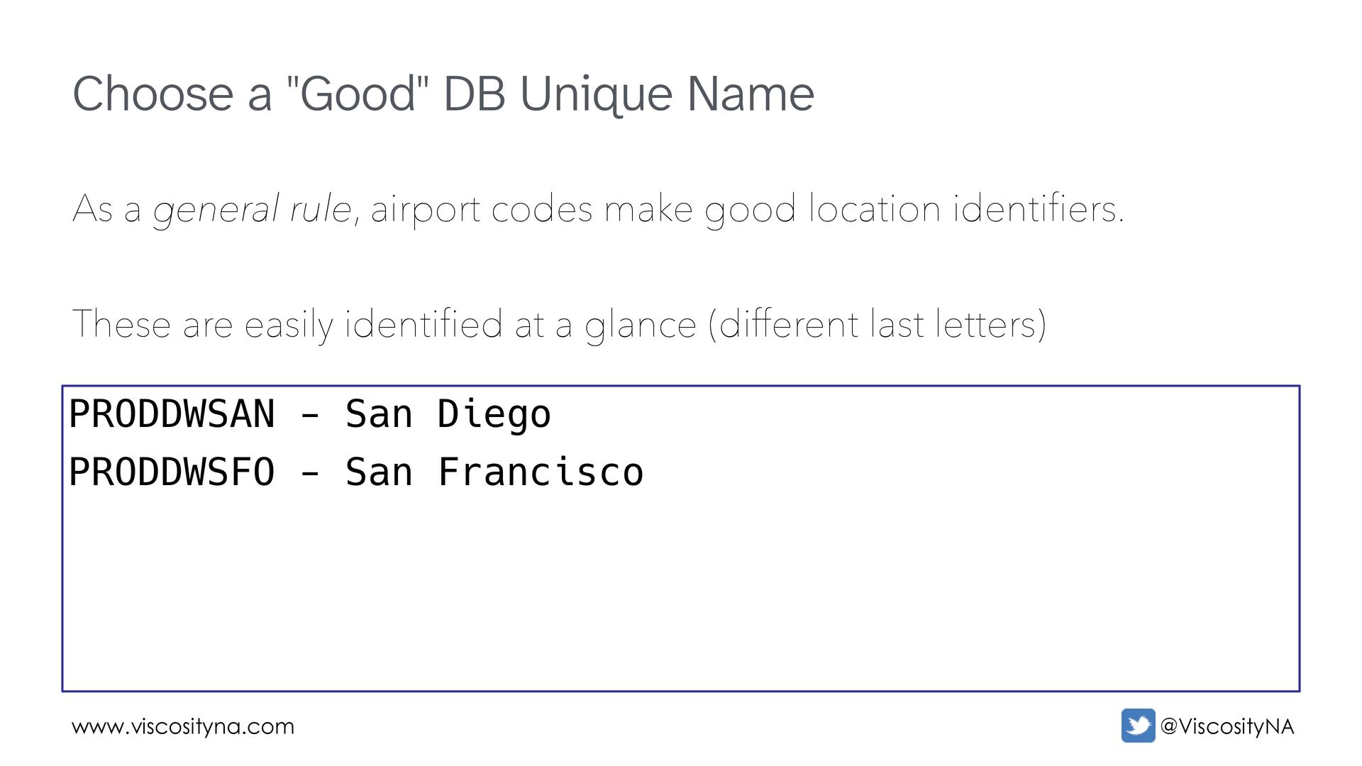 7. www.viscosityna.com @ViscosityNA Choose a "Good" DB Unique Name As a