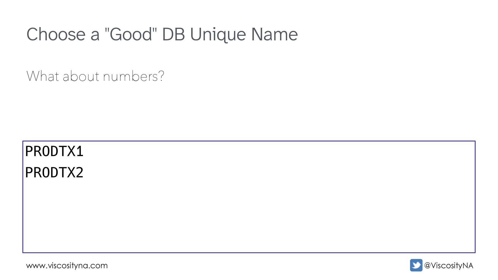 9. www.viscosityna.com @ViscosityNA Choose a "Good" DB Unique Name Still, an