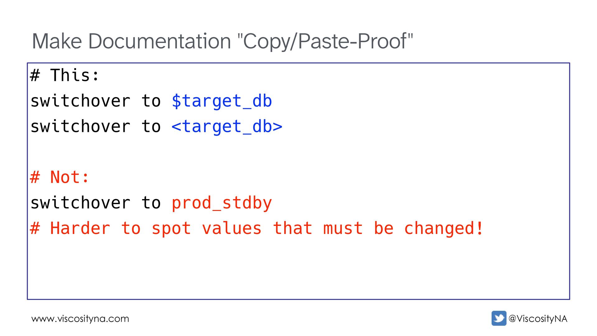 11. www.viscosityna.com @ViscosityNA Make Documentation "Copy/Paste-Proof" # This: switchover to $target_db