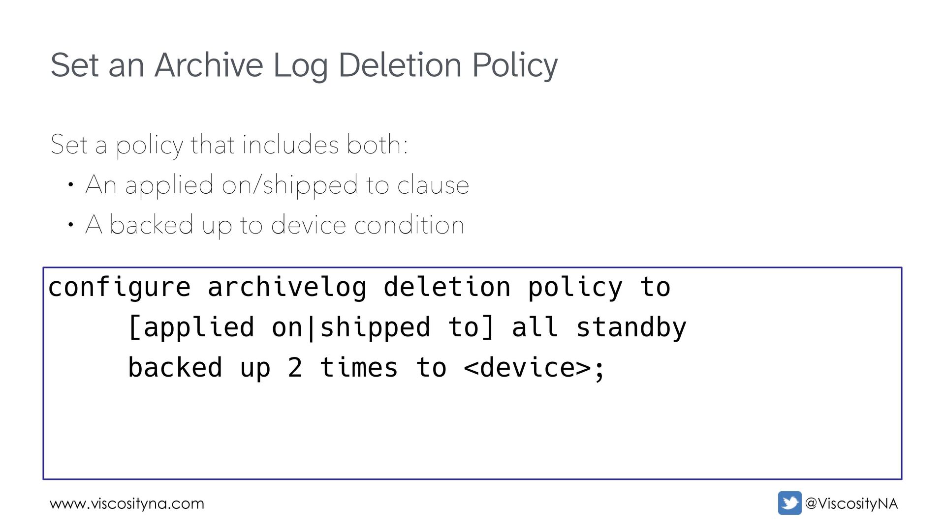 12. www.viscosityna.com @ViscosityNA Set an Archive Log Deletion Policy Set a