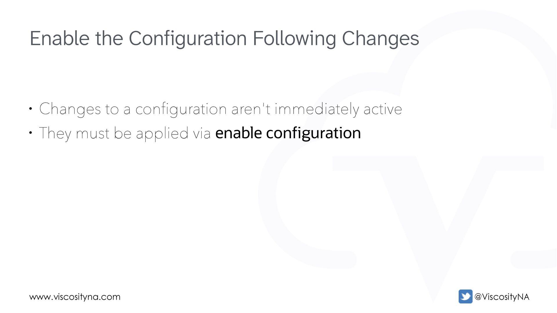 • They must be applied via enable configuration Enable the Configuration Following Changes