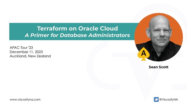 Automation ⁘ Observability Real Application Clusters ⁘ Data Guard ⁘ Sharding Containerization ⁘ Terraform ⁘ Ansible Exadata & Engineered Systems AHF ⁘ TFA ⁘ GIMR ⁘ CHA Sean Scott Oracle ACE Director Data on Kubernetes Community Ambassador Managing Principal Consultant Viscosity North America @ViscosityNA www.viscosityna.com
