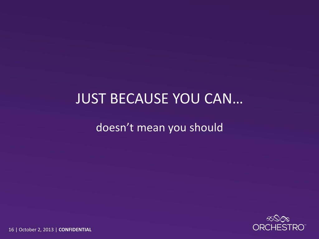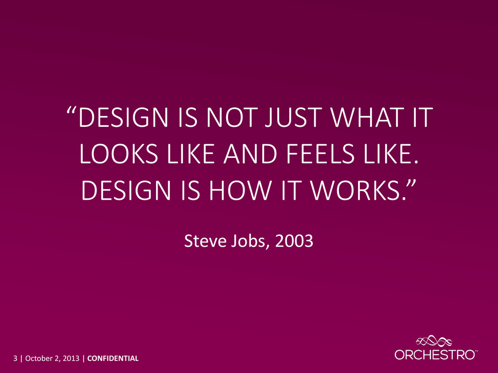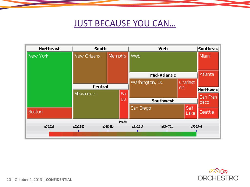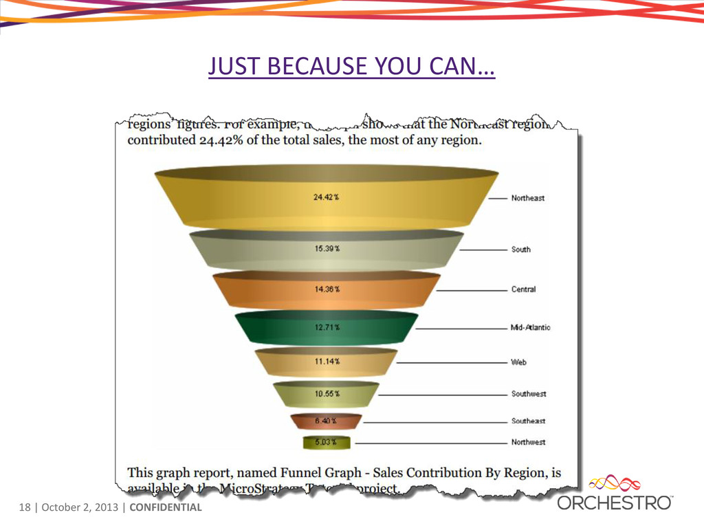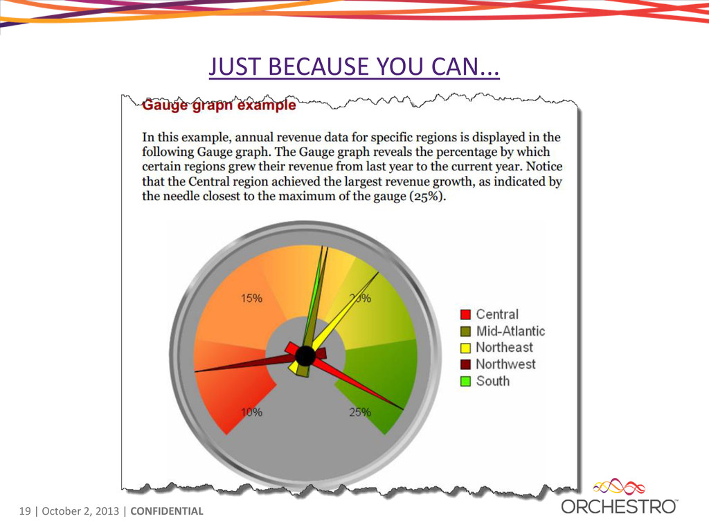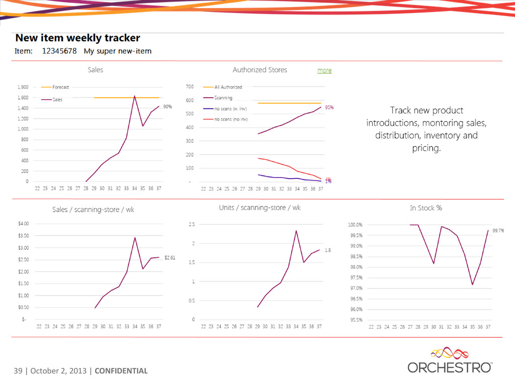REPORTS • Orchestro Release 8 includes a number of standard report templates. – Designed to clear visualization guidelines – Have a clear purpose – No unnecessary “chart junk” – They just work.