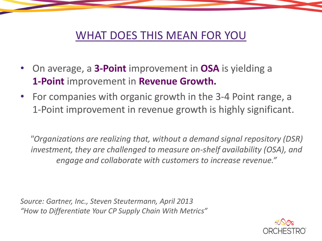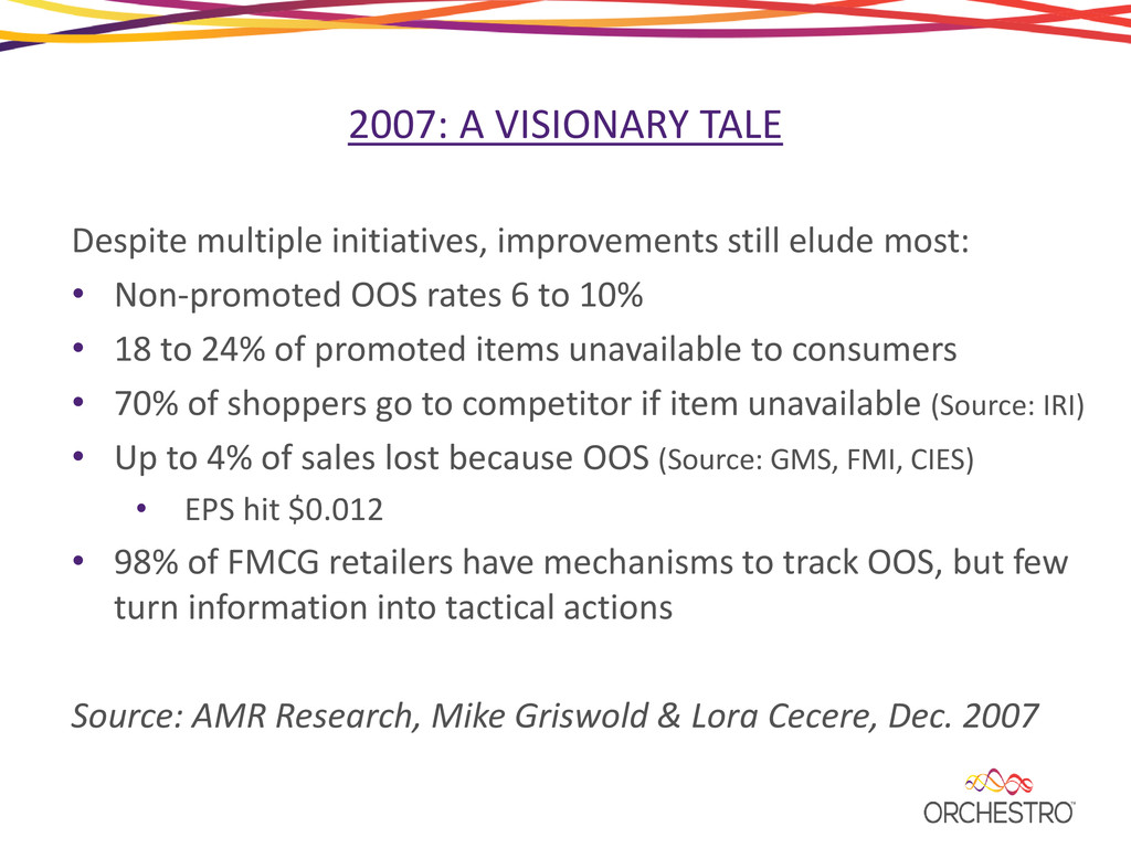 A new adaptive analytical approach is needed to capture the dynamics of the consumer goods supply chain. These concepts will be explored, including a discussion around how a retailer and manufacturer teamed to significantly increase accuracy of the forecast and shelf availability alerts.