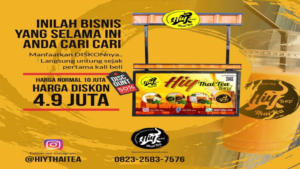Ini adalah saat yang tepat untuk anda memulai usaha karena harga paket usaha minuman HIY THAI TEA sedang ada DISKON BESAR. Harga Normal 10 Juta. Bulan ini bisa anda dapatkan hanya dengan 4.9 Juta Rupiah saja. Itu artinya anda hemat 5 juta lebih…