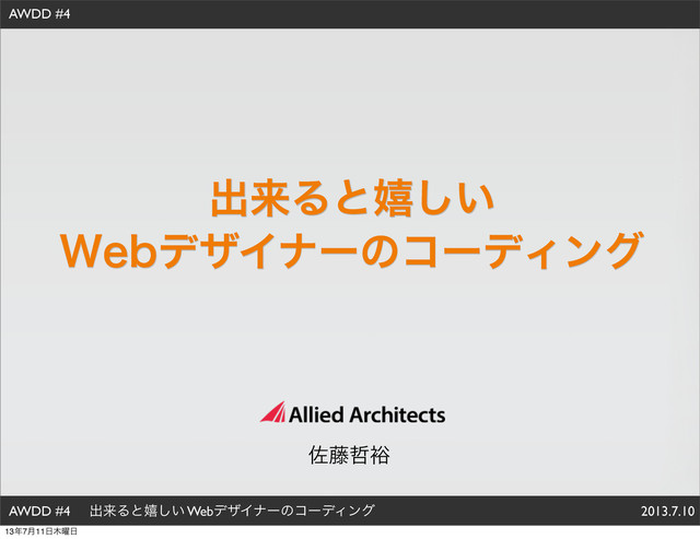 ग़དྷΔͱخ͍͠ 8FCσβΠφʔͷίʔσΟϯά AWDD #4 ࠤ౻༟ AWDD #4 ग़དྷΔͱخ͍͠ WebσβΠφʔͷίʔσΟϯά 2013.7.10
