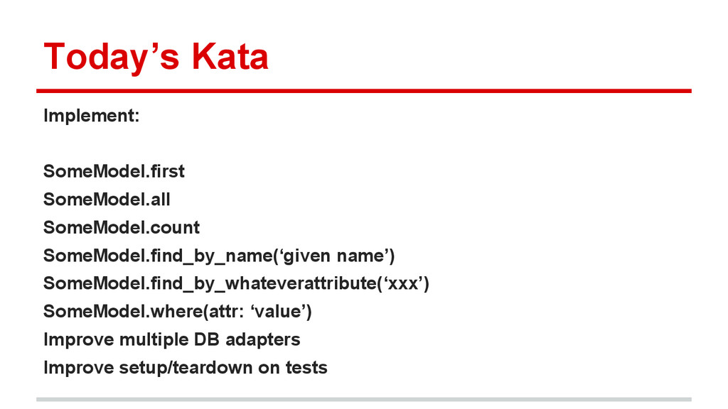 Product.where(name: ‘LCD TV’) http://guides.rubyonrails.org class CreateProducts < ActiveRecord::Migration def change create_table :products do |t| t.string :name t.text :description t.timestamps null: false end end end