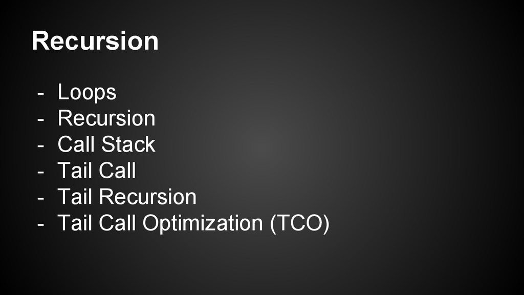 Call - Tail Recursion - Tail Call Optimization (TCO)