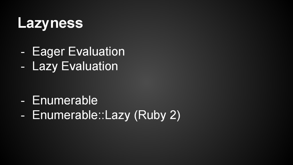 Lazyness - Eager Evaluation - Lazy Evaluation - Enumerable -