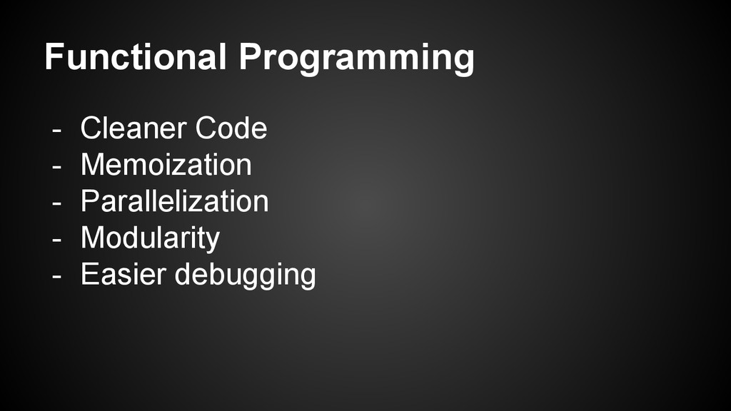 Functional Programming - Cleaner Code - Memoization - Parallelization -