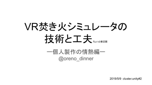 VR焚き火シミュレータの 技術と工夫 .ちょっと修正版 ー個人製作の情熱編ー @oreno_dinner 2019/5/9 cluster.unity#2
