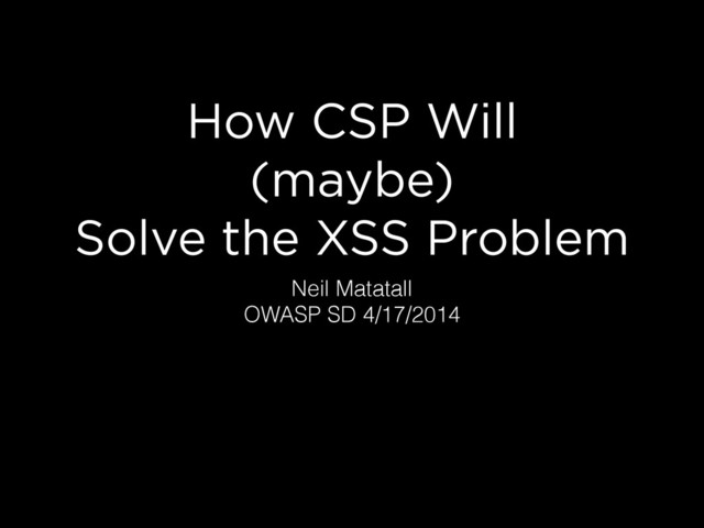 How CSP Will (maybe) Solve the XSS Problem Neil Matatall