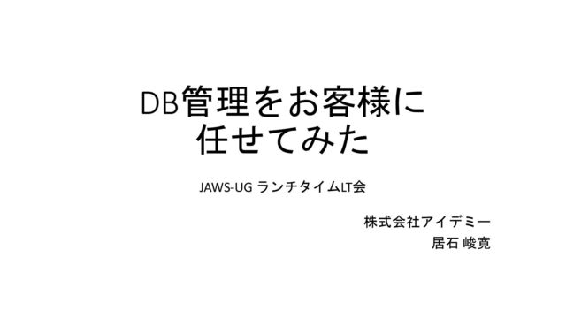DB管理をお客様に 任せてみた JAWS-UG ランチタイムLT会 株式会社アイデミー 居石 峻寛