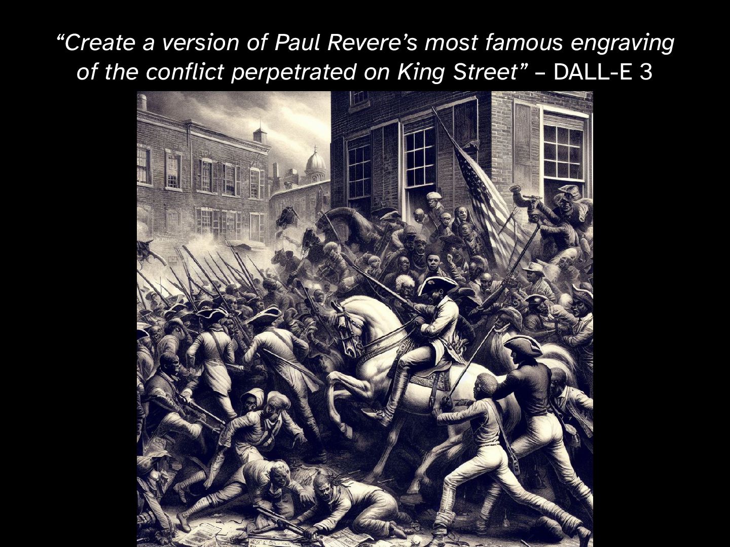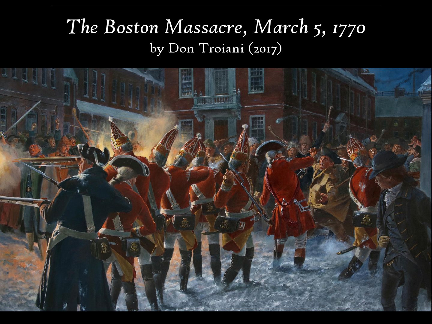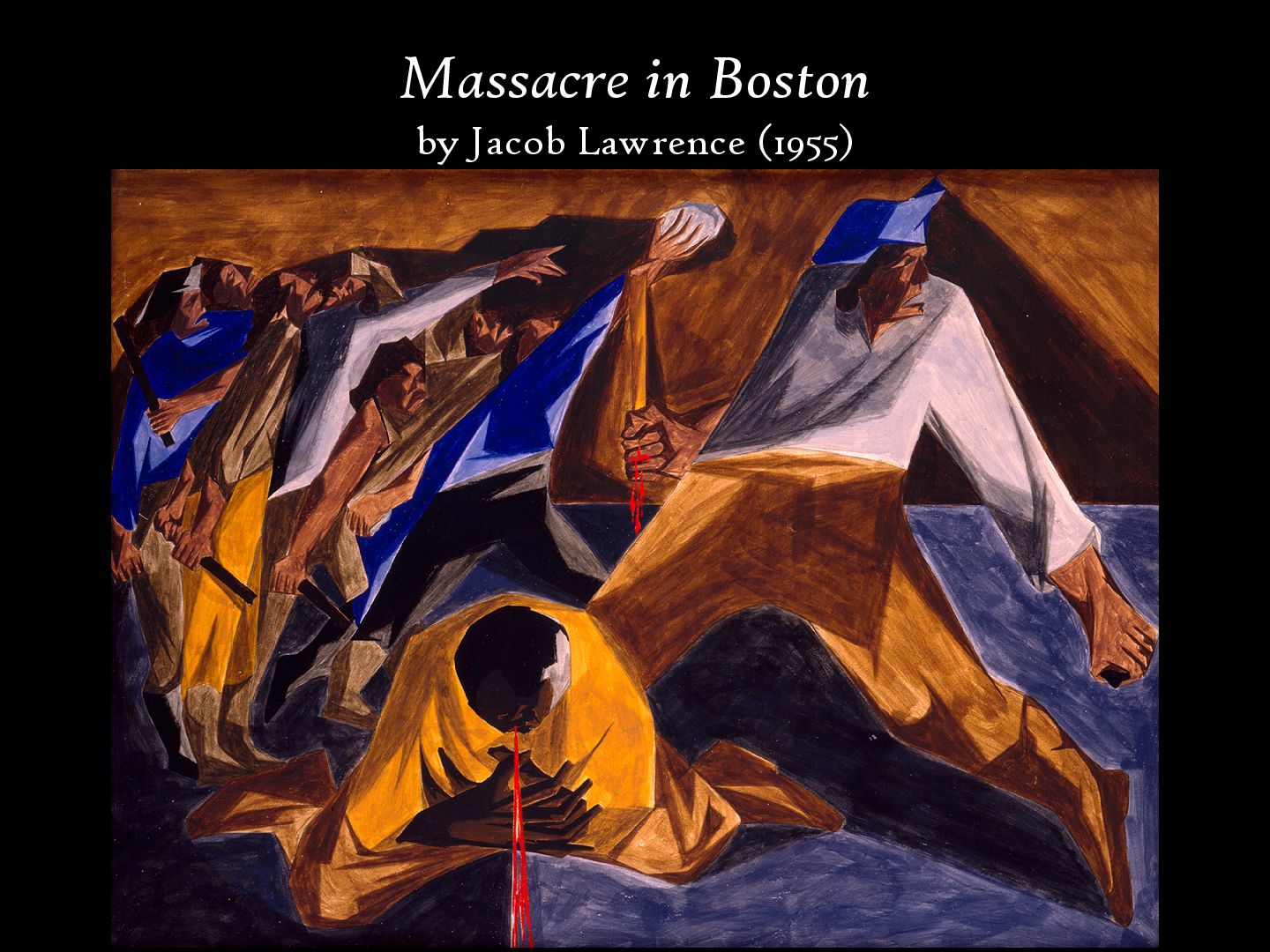 Includes detailed views of Paul Revere's engraving as well as more recent artistic (and computer-assisted) interpretations of the 1770 event. See: https://bush.posthaven.com/the-trial-of-thomas-preston-the-teams for more classroom materials, including mock trial, witness testimonies and worksheets.