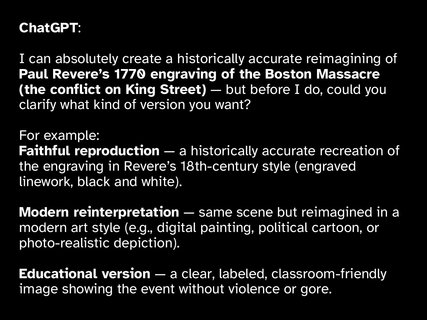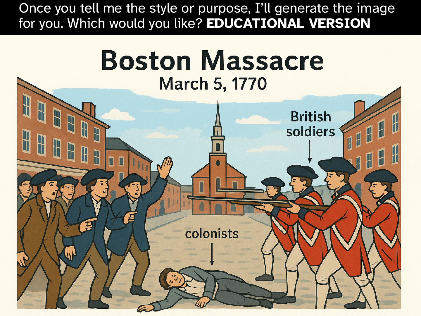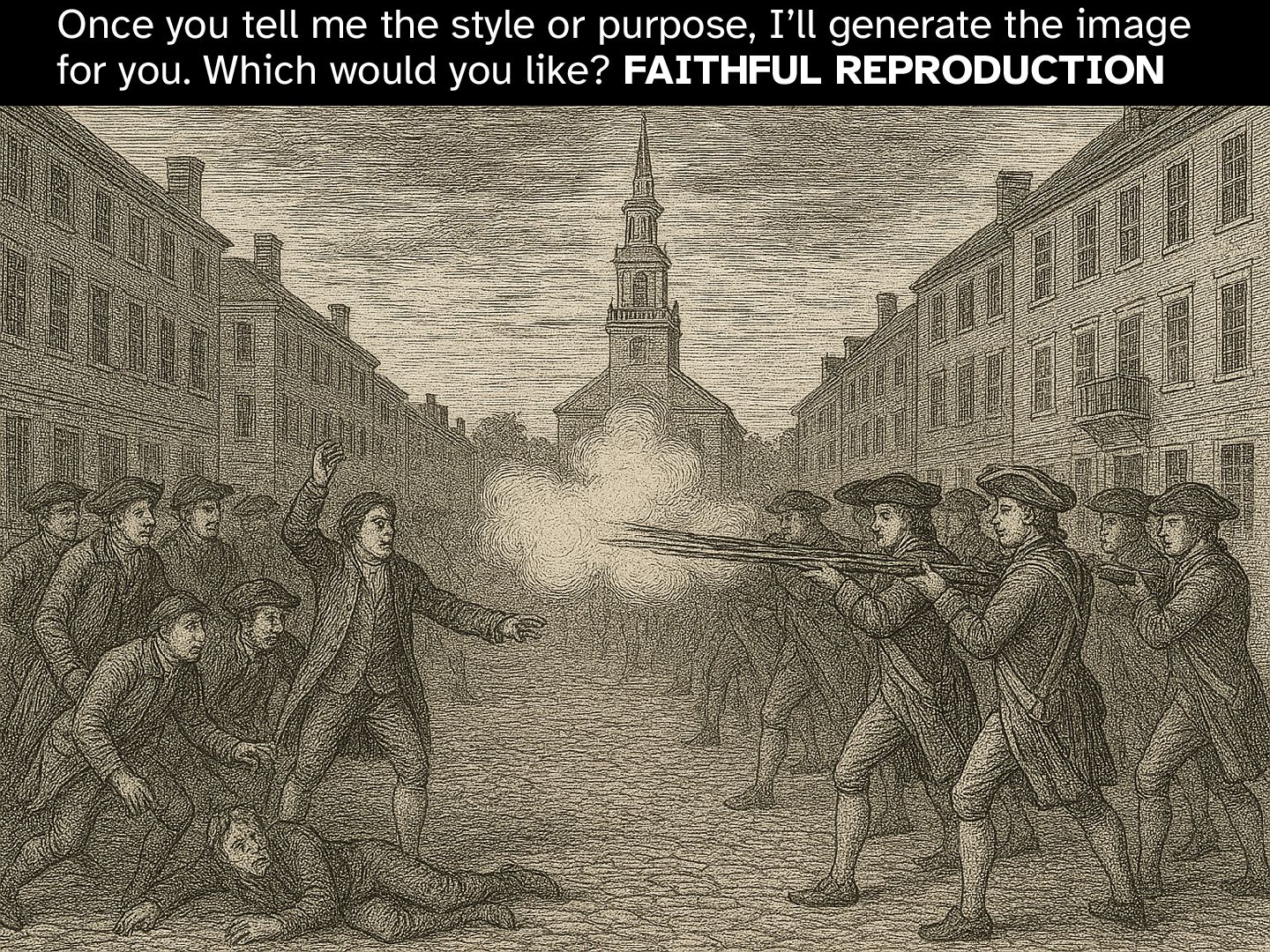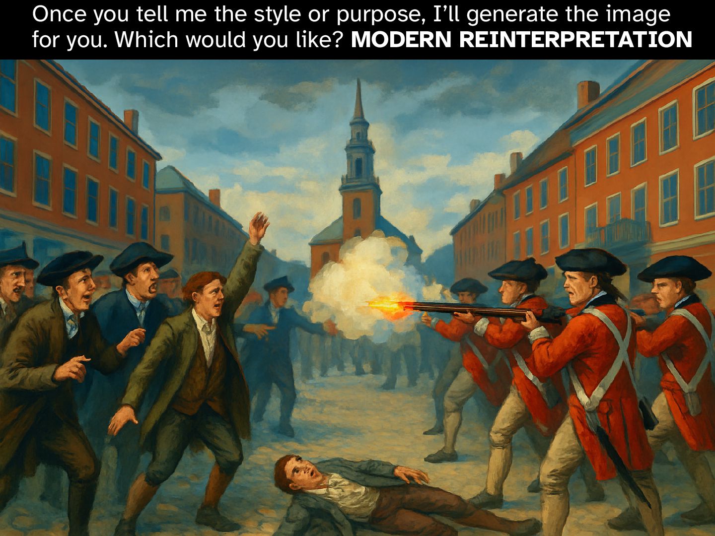 Includes detailed views of Paul Revere's engraving as well as more recent artistic (and computer-assisted) interpretations of the 1770 event. See: https://bush.posthaven.com/the-trial-of-thomas-preston-the-teams for more classroom materials, including mock trial, witness testimonies and worksheets.