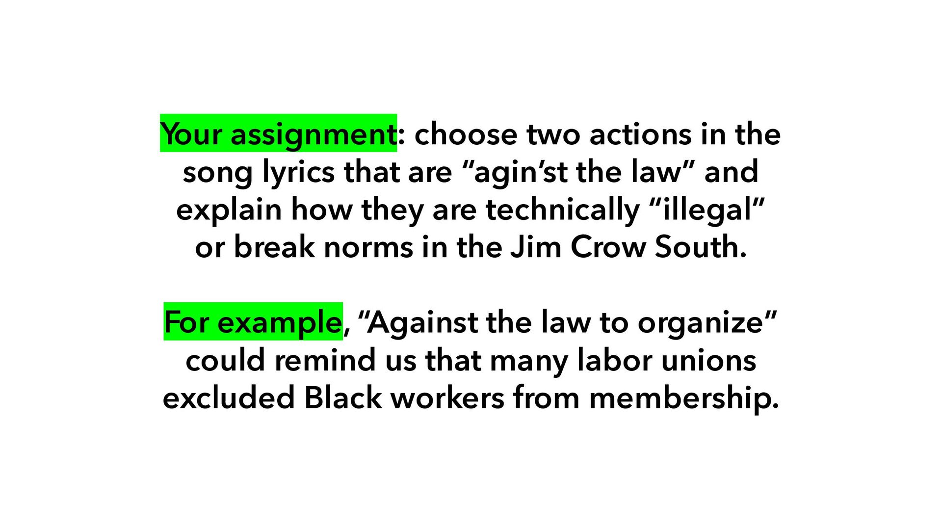 Using lyrics from Woody Guthrie and music from Billy Bragg and Wilco, we explore some of the norms and laws imposed upon Black Americans during the period of the Jim Crow South.