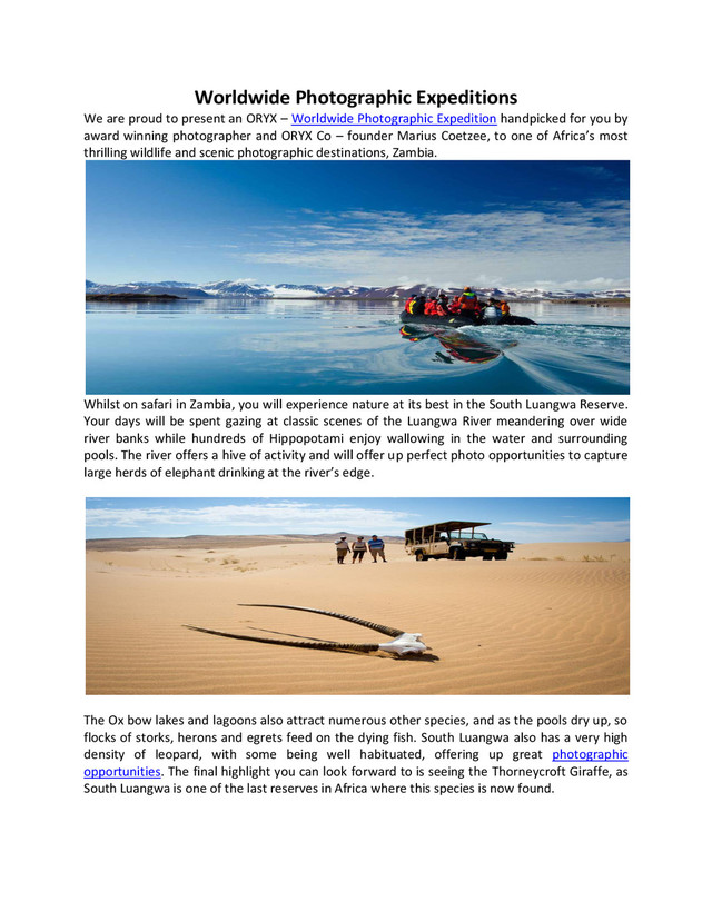 ORYX Wildlife Photography Safari Tour, Worldwide Expeditions (Best African Nature and Wild Life Photography Tours and Photographic Expeditions) is a professional photographic safari company specializing in exceptional wildlife, passionately prepared by photographers for photographers