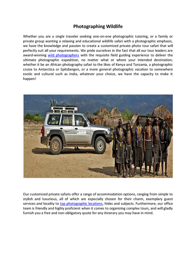 2. Photographing Wildlife – Photographic Tours In fact, our Custom safaris