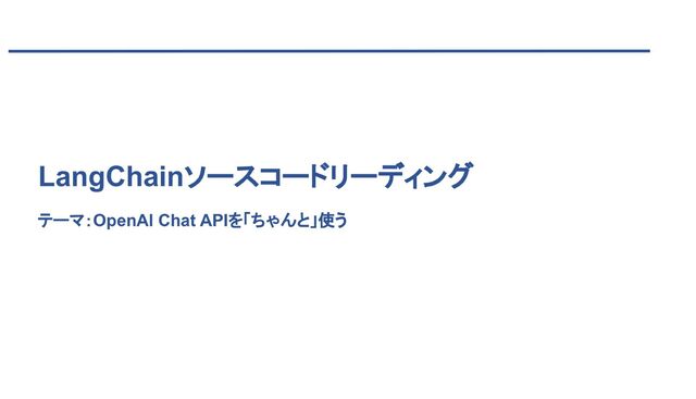 そこでこの勉強会では、LangChainでOpenAI Chat APIを「ちゃんと」使うことをテーマとして、ソースコードリーディングを実施していきます。