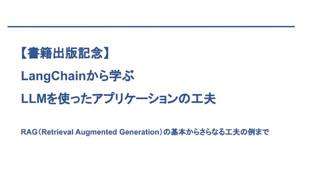 この勉強会では、LangChainからLLMを使ったアプリケーションの工夫の例を学んでいきます。