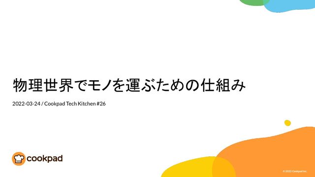 © 2022 Cookpad Inc. 物理世界でモノを運ぶための仕組み 2022-03-24 / Cookpad Tech Kitchen