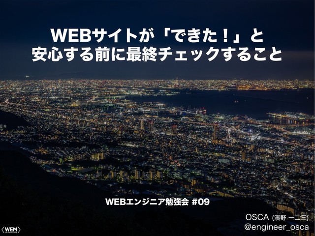 04$" ᖛ Ұೋࡾ !FOHJOFFS@PTDB 8&#αΠτ͕ʮͰ͖ͨʂʯͱ ҆৺͢Δલʹ࠷ऴνΣοΫ͢Δ͜ͱ 8&#ΤϯδχΞษڧձ