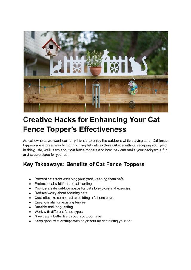 By using cat-proof fence kits, you're being a good pet owner. You're keeping your cat safe and respecting your neighbors and the environment. These toppers are great for both cats and their owners - cats get to have fun outside, and owners don't have to worry so much.